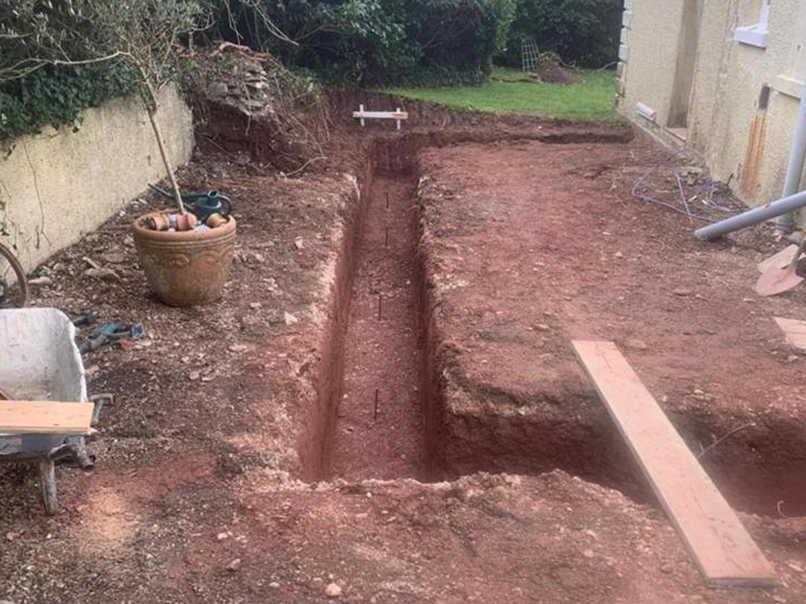 - Digging house footings and foundations for extensions, new builds, garages and out buildings.